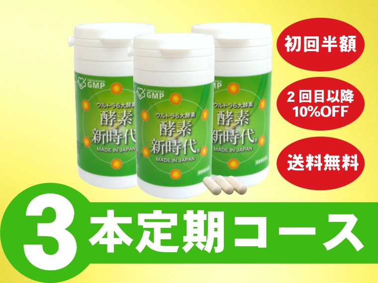 酵素新時代90カプセルが月に1本届く定額制プラン(以後自動更新)です。